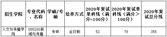 2020MJC分數線:浙江工商大學2020年新傳專碩(MJC)招生考試復試分數線