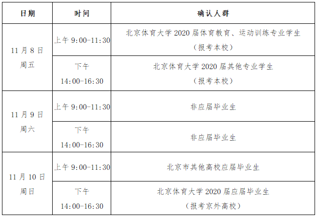 以上就是“北京體育大學2020考研現場確認時間:11月8日至11月10日另附現場確認所需材料 ”的全部內容,請考生務必參加現場審核,祝你考研成功!