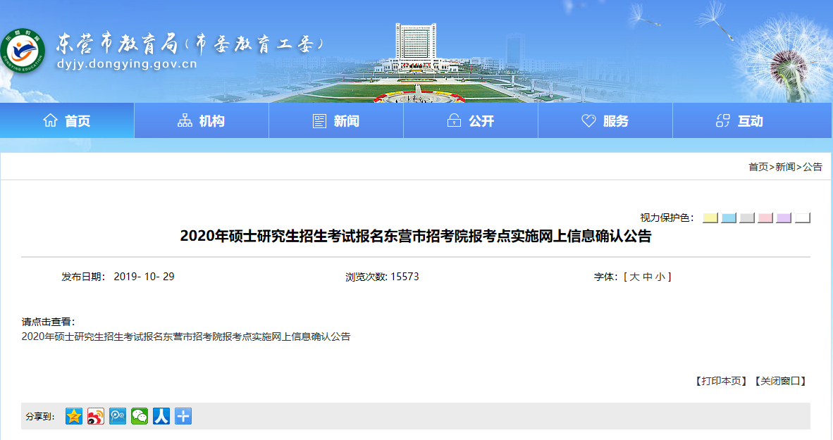 2020考研現場確認時間:東營市教育招生考試院于11月5-9號現場確認另附所需材料