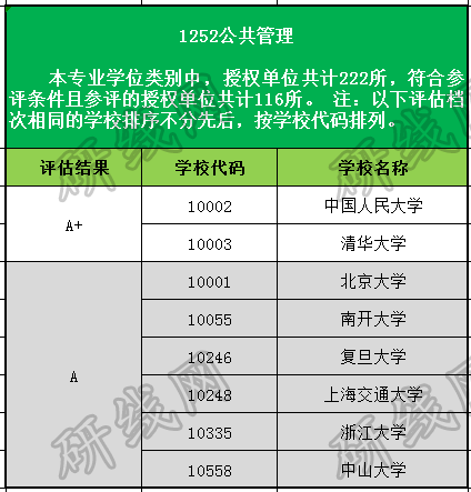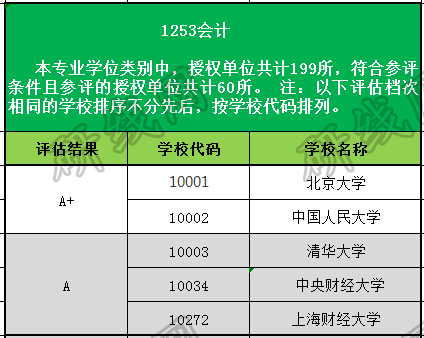 在2018年7月26日發布的全國首次專業學位水平評估中,1251工商管理、1252公共管理、1253會計的評估結果如下: