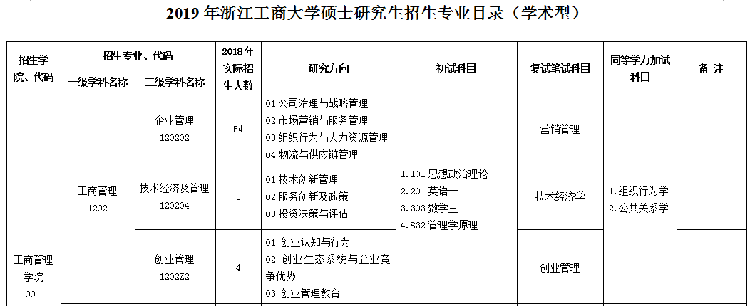圖片來源:浙江工商大學2019年碩士研究生招生專業目錄