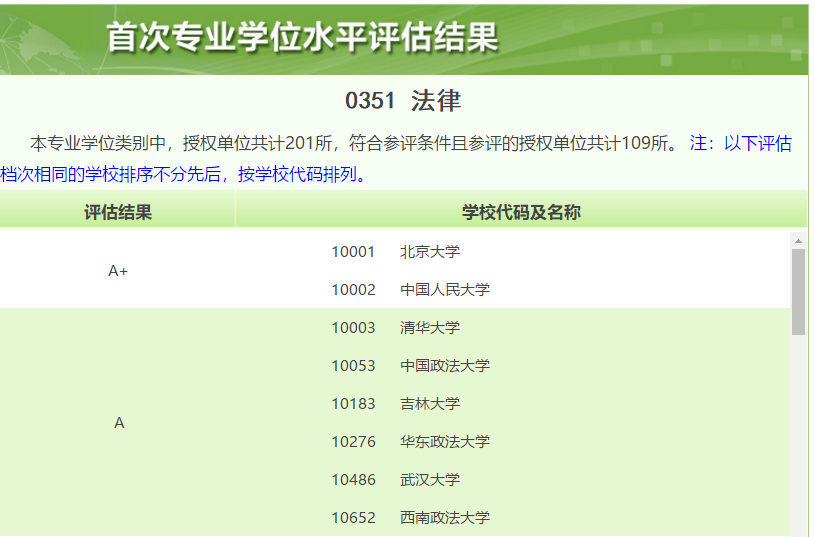 其中法律專業學位類別中,授權單位共計201所,符合參評條件且參評的授權單位共計109所。