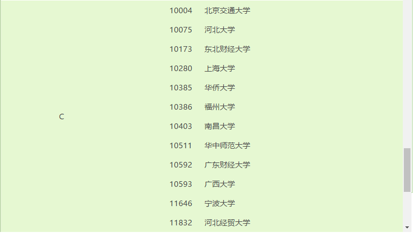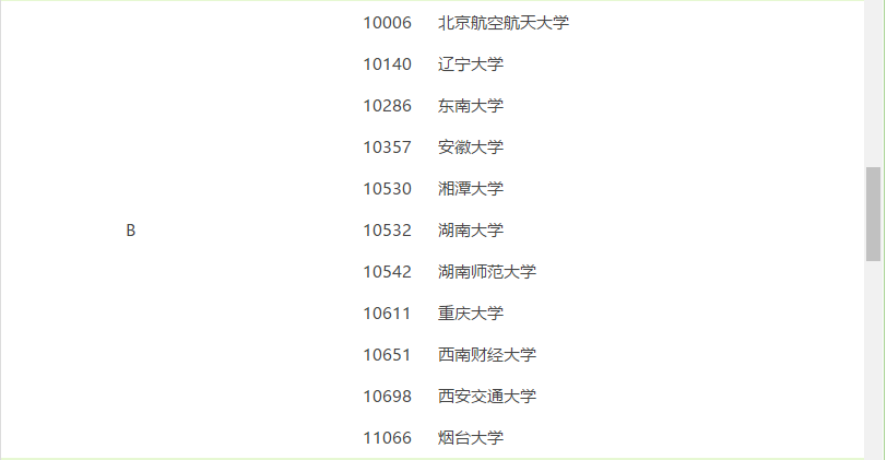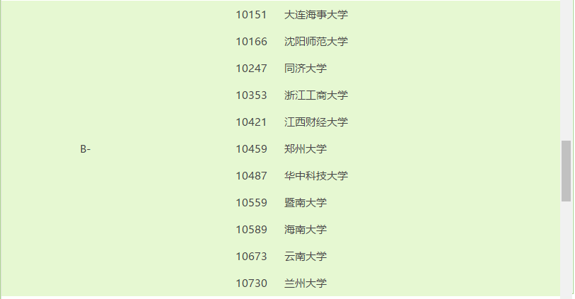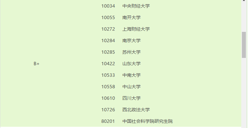 第三檔A-:北京師范大學、對外經濟貿易大學、復旦大學、上海交通大學、南京師范大學、浙江大學、廈門大學、中南財經政法大學。