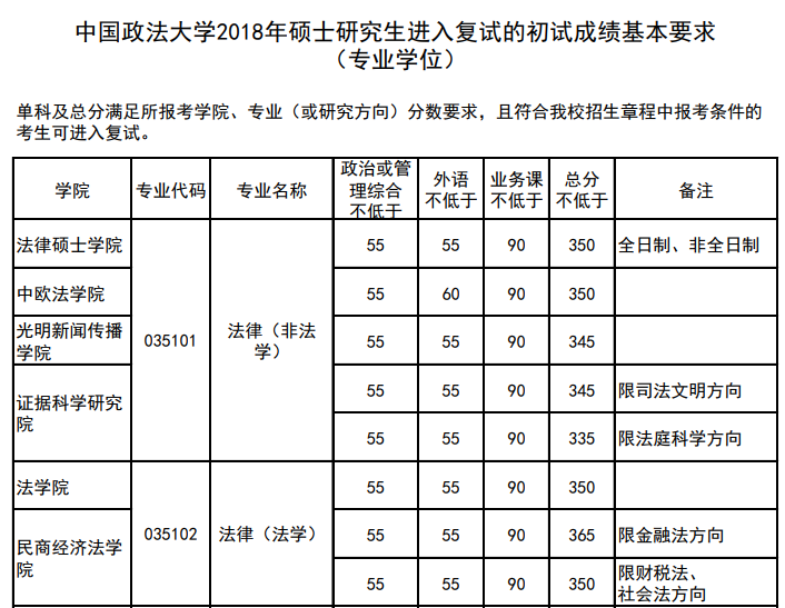 圖片來源:中南財經政法大學 2018 年攻讀碩士學位研究生初試分數線