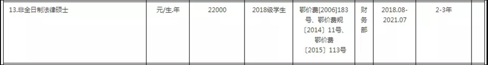 非全日制碩士研究生:法律碩士:28000 元/年。