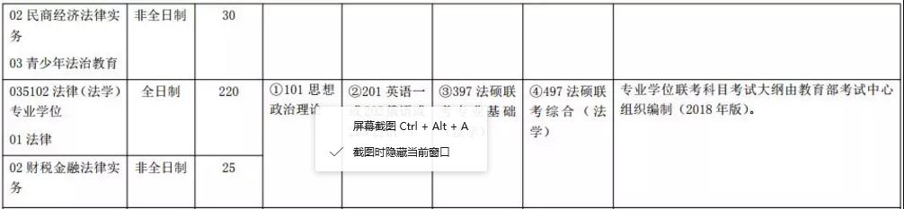 圖片來源:中國政法大學 2018 年攻讀碩士學位研究生招生專業目錄