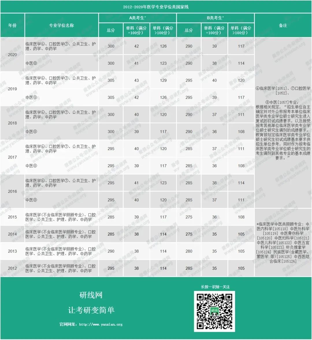 2012-2020年醫學專業學位類國家線: