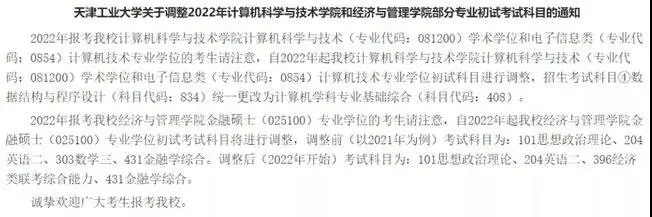 招生考試科目①數據結構與程序設計(科目代碼: 834) 統一更改為計算機學科專業基礎綜合(科目代碼: 408)