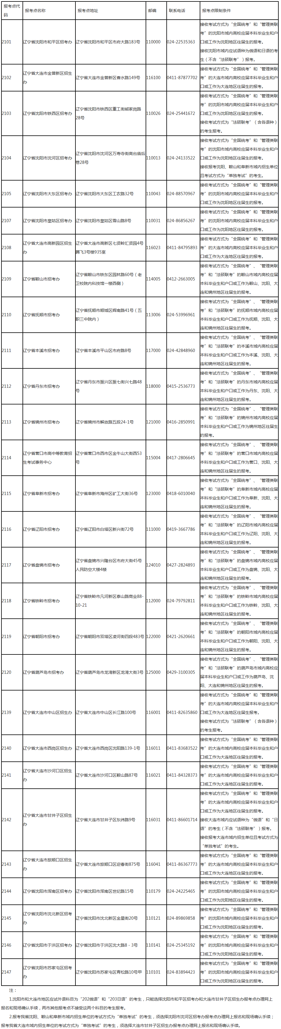 遼寧省2019年全國(guó)碩士研究生招生考試報(bào)考點(diǎn)一覽表(一)