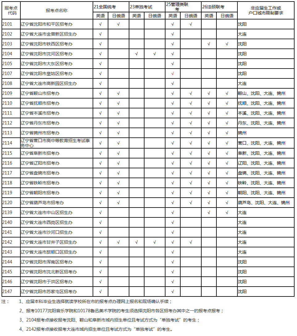 遼寧省2019年全國碩士研究生招生考試報考點一覽表(二)