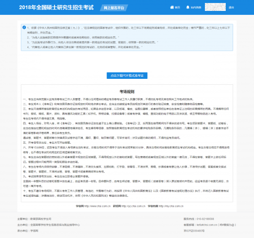 我們以去年的頁面為例,點擊進入下個頁面,此頁面中包括了考試時間和考試提醒,建議大家都仔細看看,接下來可看到你的報名信息,仔細核對信息,信息無誤后點擊"準考證下載"按鈕,進入到下載頁面