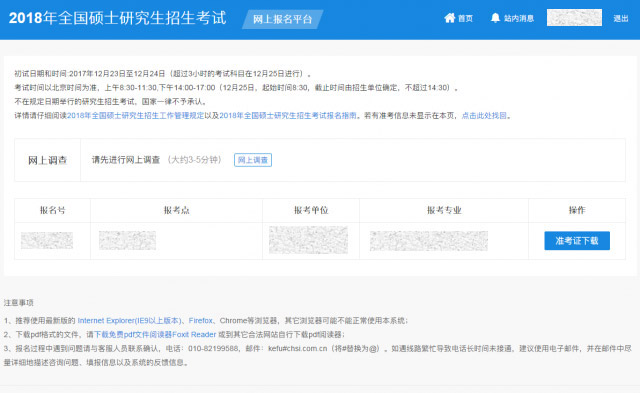 這個頁面上的提示要認真閱讀,然后再懷著激動的心情點擊“下載PDF格式準考證”按鈕!