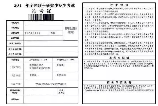 注:此圖片來源于往年準考證,2019考研準考證以實際情況為準哦