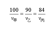 還是那個原則,路程、速度、時間都安排上。第一段,甲到達終點時,乙距終點還差10米,丙距終點還差16米。意思就是:同樣時間,甲跑100米,乙90米,丙84米。根據時間相等的等量關系,可得:
