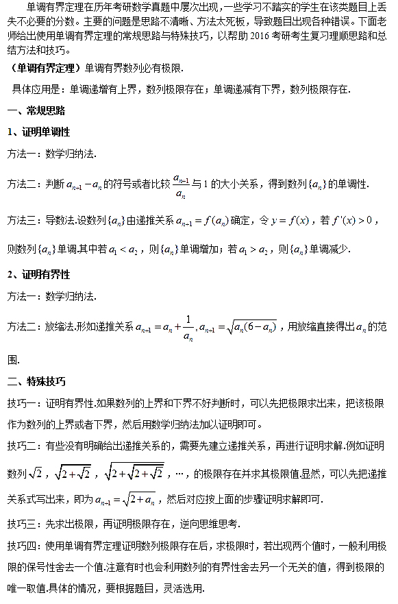 求極限是高數必考點之一,求極限的方法很多,單調有界收斂定理求極限是常考之一,下面我們一起來回顧回顧: