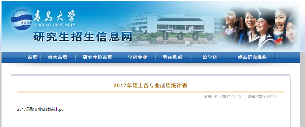 【點擊查看】青島大學2017年碩士各專業成績統計表