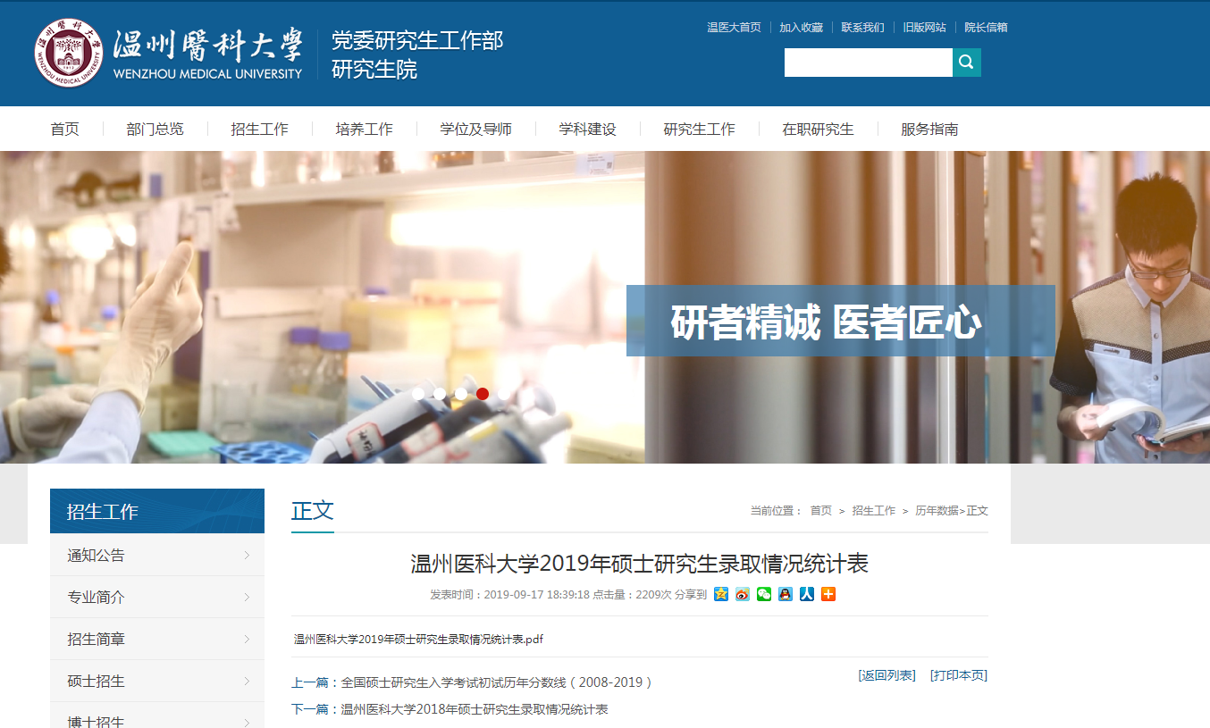 以上就是“溫州醫(yī)科大學(xué)2019年碩士研究生錄取情況統(tǒng)計表”的全部內(nèi)容!祝你考研成功!