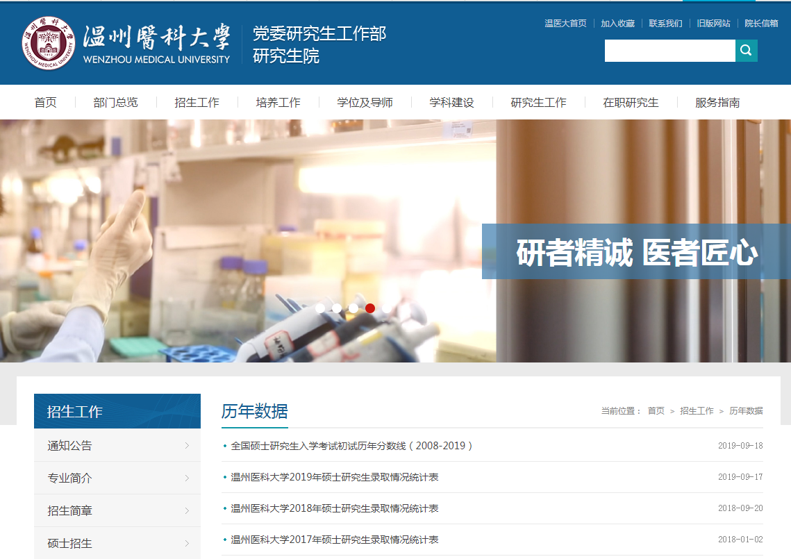 以上就是“溫州醫科大學2017年-2019年碩士研究生錄取情況統計表”的全部內容!祝你考研成功!