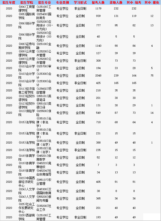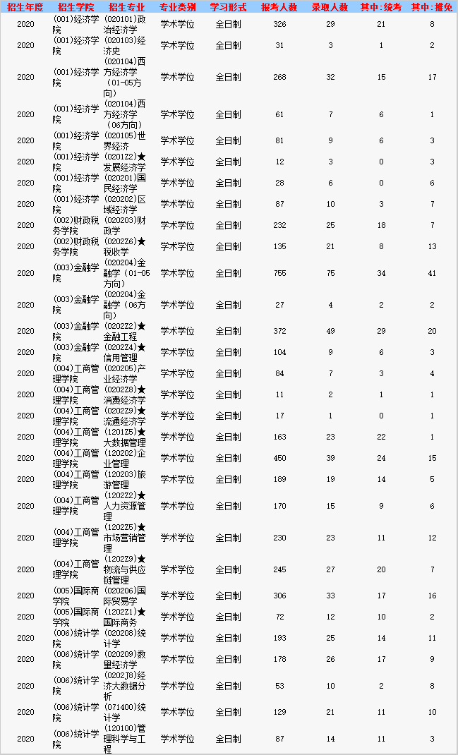 原文標題:西南財經大學歷年報考、錄取數據查詢頁面 (碩士)(2000-2020)