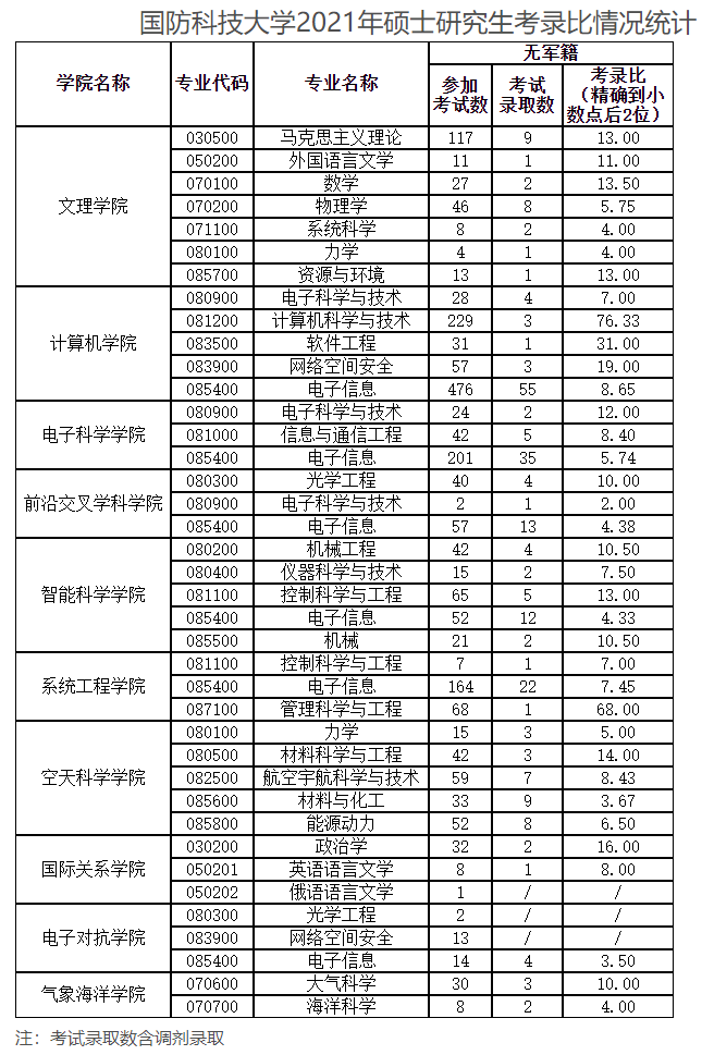 原文標(biāo)題:國防科技大學(xué)2021年碩士研究生考錄比情況統(tǒng)計