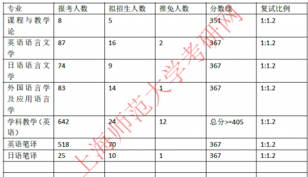 考研報錄比:2022年上海師范大學外國語學院考研報錄比