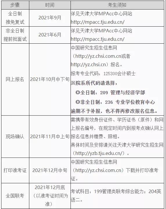 以上就是“2022MPAcc招生簡章:天津大學2022年會計碩士(MPAcc)招生簡章”的內容,更多考研信息,請持續關注本網站。