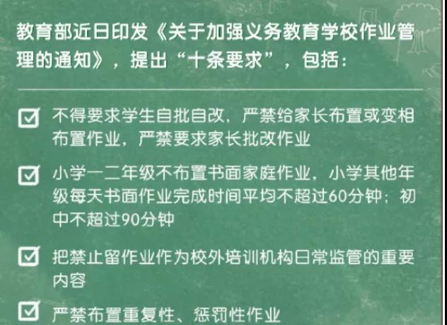 4. 教育部印發(fā)《關(guān)于加強義務教育學校作業(yè)管理的通知》提出,確保作業(yè)難度不超過國家課程標準要求,鼓勵學校系統(tǒng)化選編、改編、創(chuàng)編符合學習規(guī)律、體現(xiàn)素質(zhì)教育導向的基礎性作業(yè)。嚴禁布置重復性懲罰性作業(yè)。