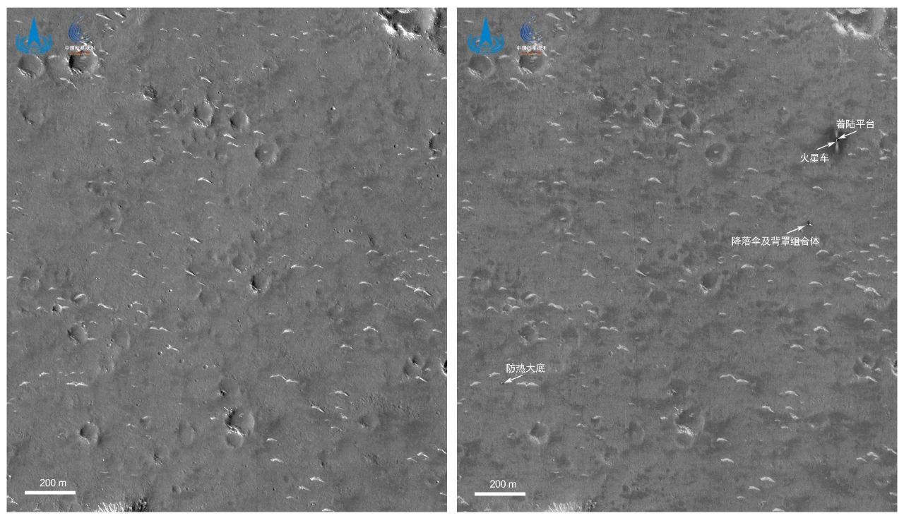 5.7日,國家航天局發布我國首次火星探測天問一號任務著陸區域高分影像圖,影像圖由天問一號環繞器高分辨率相機于6月2日18時拍攝。