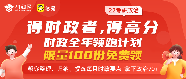22考研政治想要70+,時政部分不可或缺。時事熱點貫穿全年,搜集整理費時耗力,考研時間寶貴,不要隨意浪費。研線網(wǎng)時政全年托管:重點時政專題、周年紀(jì)念大事件、重大改革與成就、國際峰會實時掌控、政治必考知識點......每月按時發(fā)放!