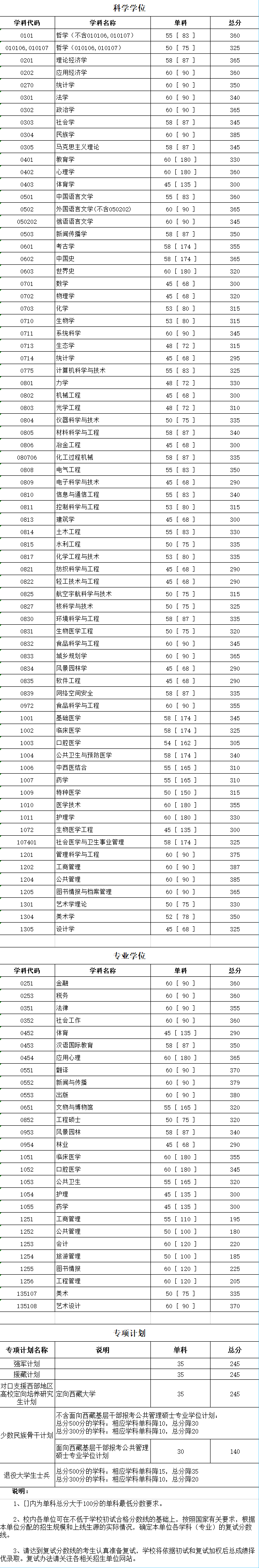 2019年四川大學自主劃線初試成績