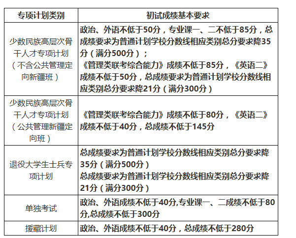 (1)參加“大學生志愿服務西部計劃”“三支一扶計劃”“農村義務教育階段學校教師特設崗位計劃”“赴外漢語教師志愿者”等項目服務期滿、考核合格的考生,3年內參加全國碩士研究生招生考試的,初試總分加10分,同等條件下優先錄取。