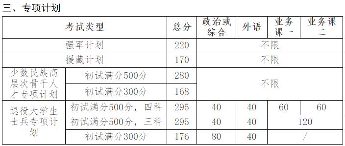 3.關(guān)于少數(shù)民族高層次骨干人才專項(xiàng)計(jì)劃,對(duì)于達(dá)到復(fù)試基本成績(jī)要求的考生,按照教育部下達(dá)給我校的分省招生計(jì)劃擇優(yōu)確定復(fù)試名單,沒有合格生源省份的招生計(jì)劃將按照初試總分由高到低的原則調(diào)劑給生源充足的省份。初試總分相同時(shí),理工農(nóng)醫(yī)考生優(yōu)先,之后以外語、政治、業(yè)務(wù)課的順序按單科成績(jī)排序。聯(lián)考考生成績(jī)按照初試成績(jī)滿分500分折算后統(tǒng)籌考慮。定向服務(wù)地區(qū)招生計(jì)劃詳見教育部相關(guān)網(wǎng)站。按教育部要求,我校2020年少數(shù)民族高層次骨干人才專項(xiàng)計(jì)劃擴(kuò)招9人,其中學(xué)術(shù)學(xué)位2人,專業(yè)學(xué)位7人,均按初試成績(jī)擇優(yōu)確定復(fù)試名單。