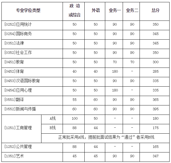說明:此復試基本分數線只是我校復試的最低分數要求,接受報考的學部院系可根據整體考試情況、招生計劃、學科專業特點等,上調分數要求。考生須同時達到學校復試基本分數線和報考學部院系調整設定的復試分數線,才有資格參加復試。學部院系調整設定的復試分數線和復試辦法,另行通知。