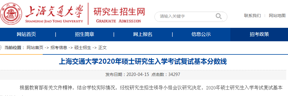 以上就是有關(guān)“2020考研分數(shù)線:上海交通大學2020年碩士研究生入學考試復試基本分數(shù)線”的全部內(nèi)容了,進入復試的同學一定要好好準備,在國家線徘徊的同學抓緊準備調(diào)劑了!