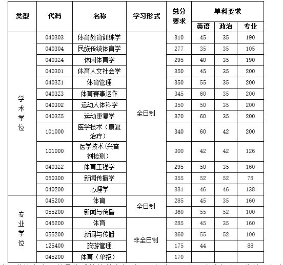 以上就是有關“2020考研分數線:上海體育學院2020年碩士研究生招生考試復試基本分數線公布”的全部內容了,進入復試的同學一定要好好準備,在國家線徘徊的同學抓緊準備調劑了!