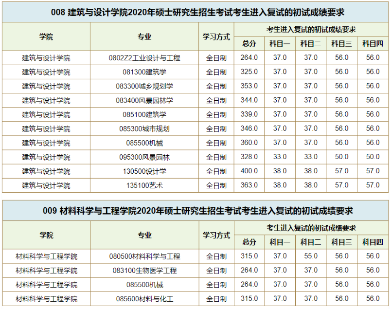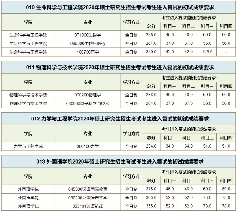 根據教育部有關文件精神,結合我校實際情況,經學校和各招生單位研究生招生工作領導小組審定,我校2020年碩士研究生招生考試各專業考生進入復試的初試成績要求如下表(陸續更新),請關注本網站發布的最新信息。