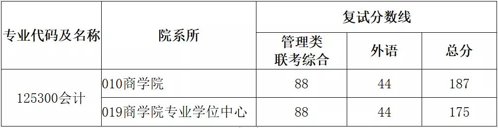 經學院招生領導小組討論決定,商學院會計碩士(MPAcc)2020年碩士研究生復試分數線如下: