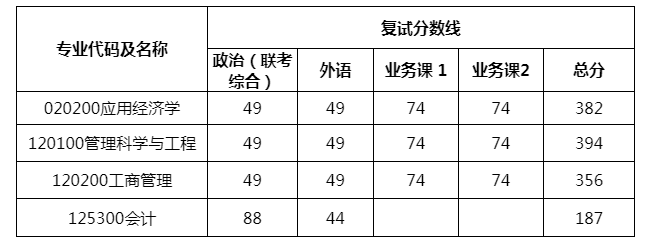 經(jīng)學院招生領導小組討論決定,商學院 2020 年碩士研究生復試分數(shù)線如下: