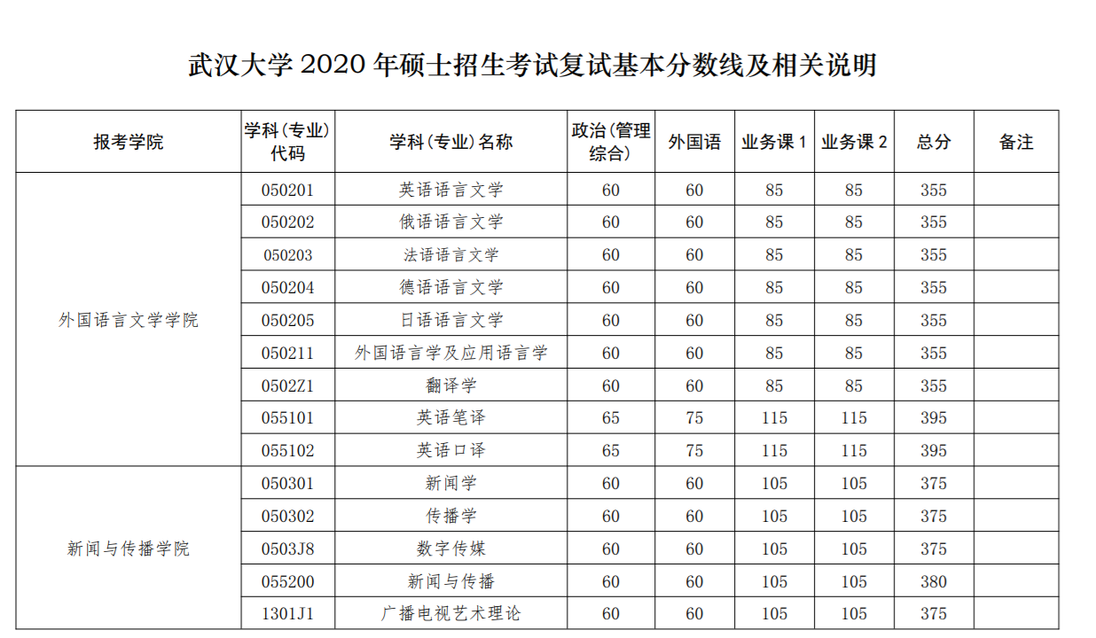 以上就是有關(guān)“2020考研分?jǐn)?shù)線:武漢大學(xué)2020年碩士研究生復(fù)試基本分?jǐn)?shù)線公布!”的全部內(nèi)容了,進(jìn)入復(fù)試的同學(xué)一定要好好準(zhǔn)備,在國家線徘徊的同學(xué)抓緊準(zhǔn)備調(diào)劑了!