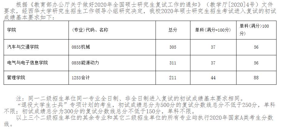分數線。西華大學已經公布2020年碩士研究生入學考試復試基本