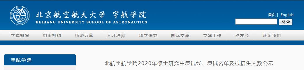 以上就是有關“2020考研分數線:北京航空航天大學宇航學院2020年碩士研究生復試線、復試名單及擬招生人數公示”的全部內容了,進入復試的同學一定要好好準備,在國家線徘徊的同學抓緊準備調劑了!