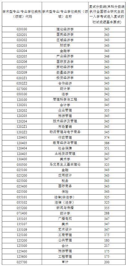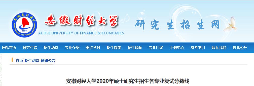 2020考研分數線:安徽財經大學2020年碩士研究生招生各專業復試分數線