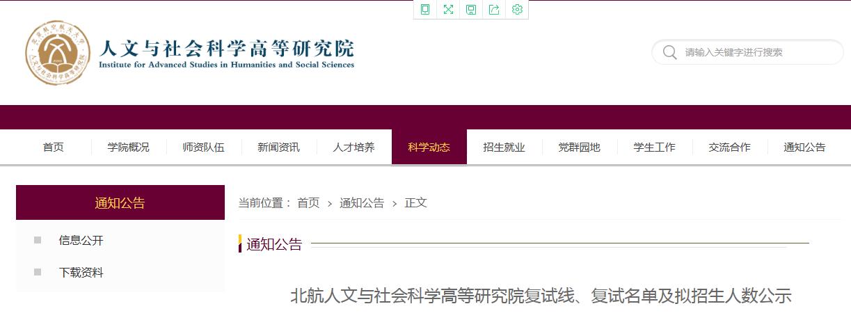 以上就是有關“2020考研分數線:北京航空航天大學人文與社會科學高等研究院復試線、復試名單及擬招生人數公示”的全部內容了,進入復試的同學一定要好好準備,在國家線徘徊的同學抓緊準備調劑了!