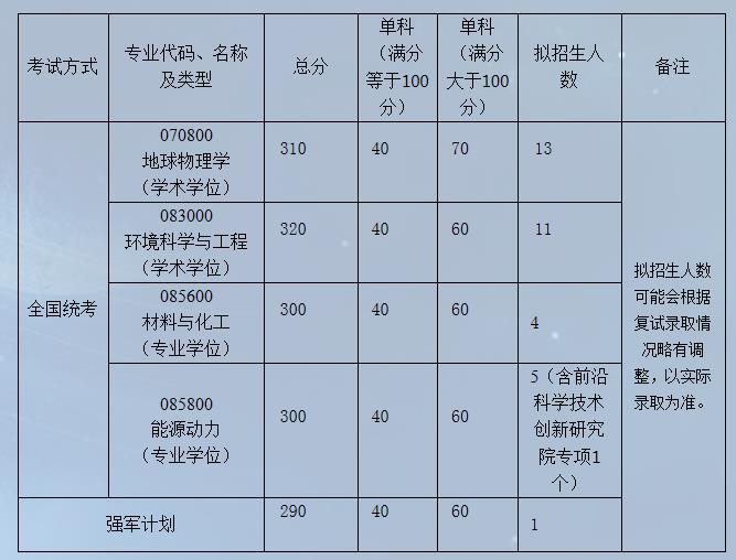 三、我院070800地球物理學(學術學位)、085600材料與化工(專業學位)、085800能源動力(專業學位)接收調劑。有關調劑要求將于5月20日左右通過學院網站公布,并同時在教育部調劑系統發布,通過教育部調劑系統進行。