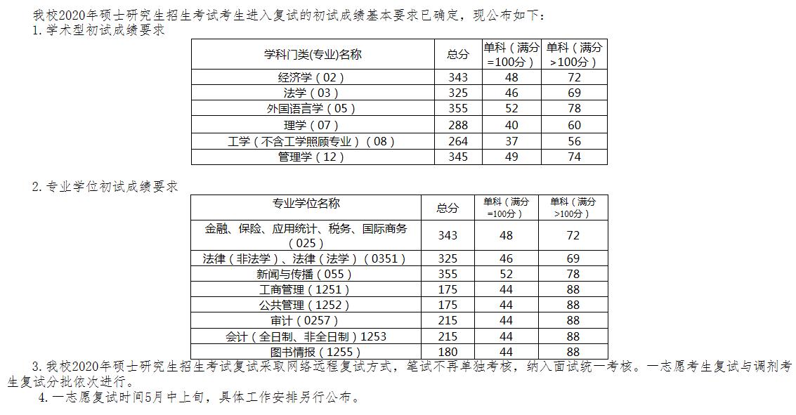 2020考研分?jǐn)?shù)線:吉林財(cái)經(jīng)大學(xué)2020年碩士研究生招生考試考生 進(jìn)入復(fù)試的初試成績要求