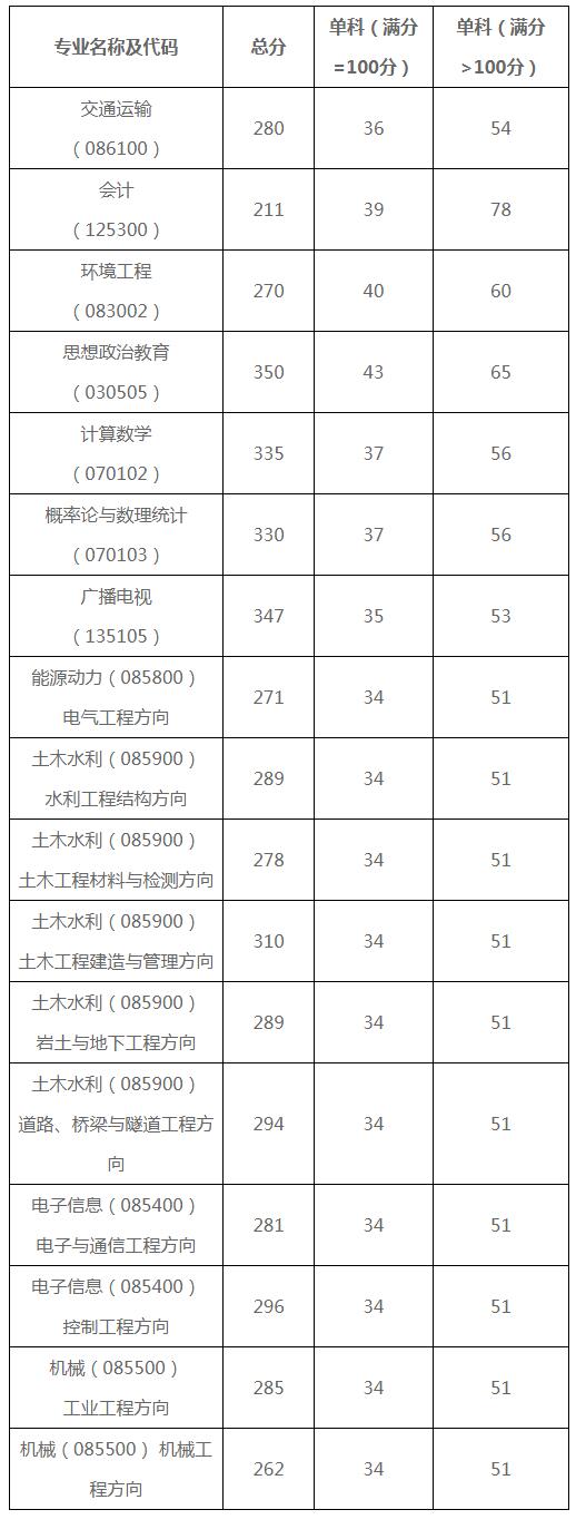 (1)B類國家線總分要求高于300分的學科門類和專業(yè)學位:總分275分,單科(滿分=100分)30分,單科(滿分=150分)50分。