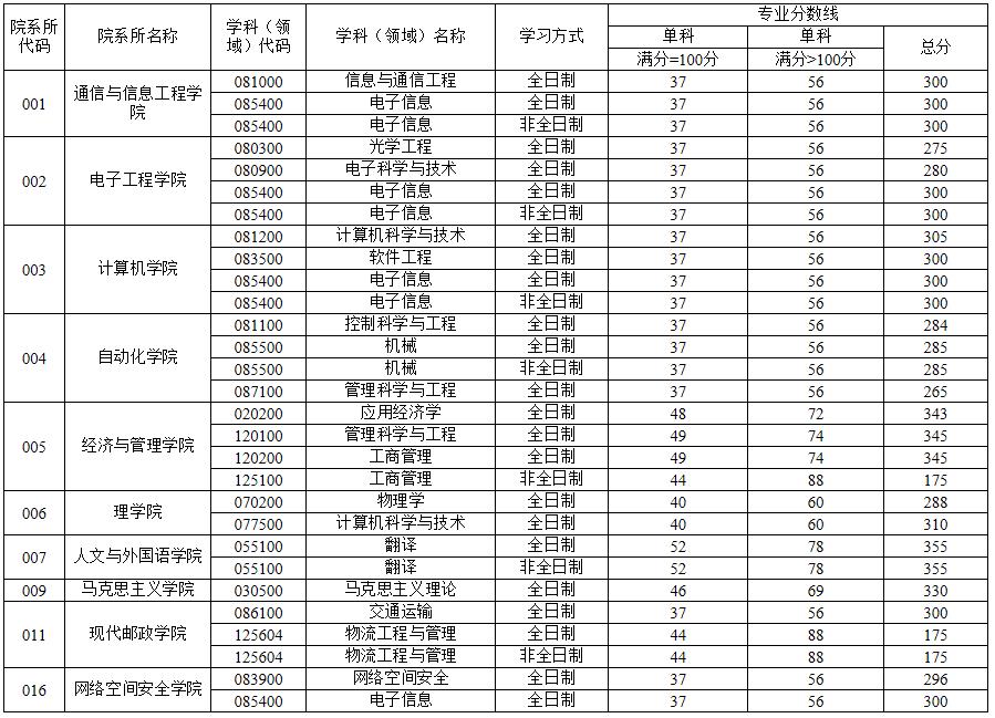 西安郵電大學2020年碩士研究生招生進入復試的初試成績基本要求