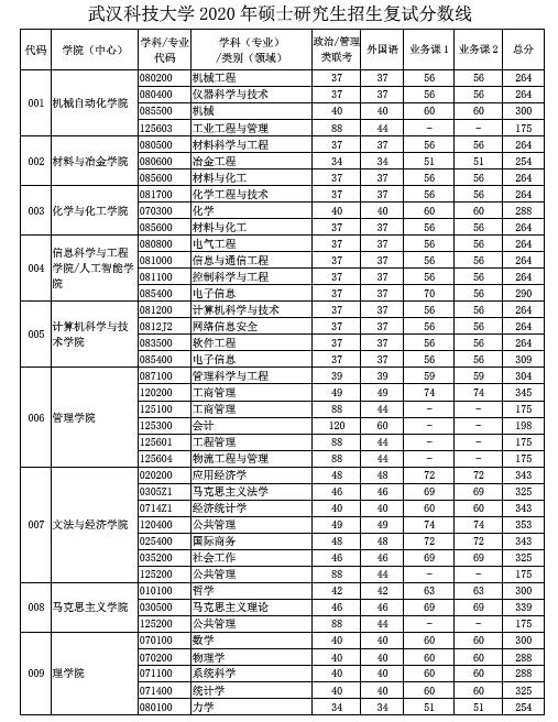 分?jǐn)?shù)線,武漢科技大學(xué)也公布了2020年碩士研究生招生復(fù)試