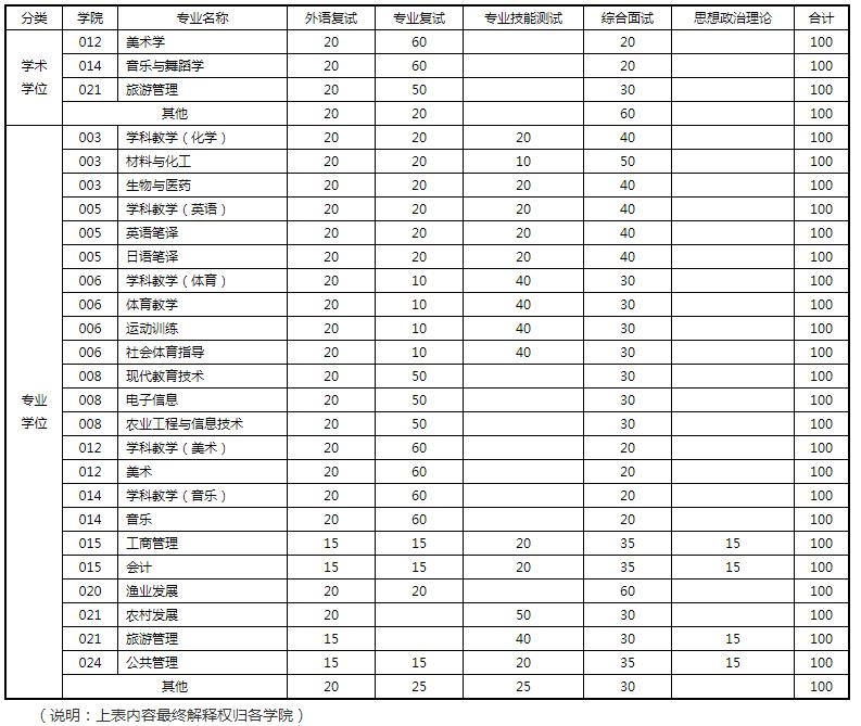 考生總成績包括初試成績和復試成績,其中初試成績所占權重為60%,復試成績占40%。復試成績中各項所占百分比如下表如示: