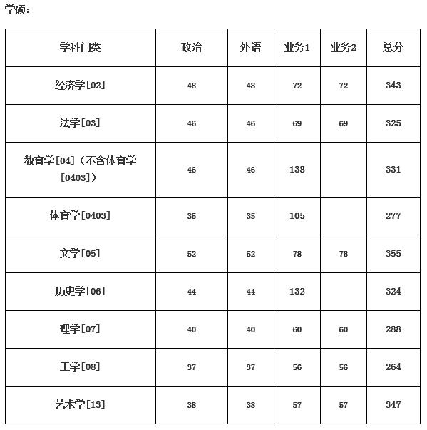 根據(jù)教育部《2020年全國碩士研究生招生考試考生進(jìn)入復(fù)試的初試成績基本要求》,經(jīng)學(xué)校研究生招生工作領(lǐng)導(dǎo)小組研究決定,我校2020年碩士研究生進(jìn)入復(fù)試的初試成績基本要求按國家A類考生分?jǐn)?shù)線執(zhí)行,具體如下。